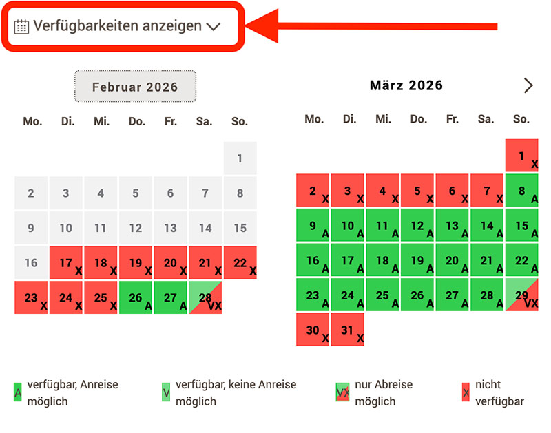 Sie finden den Verfügbarkeitskalender unter der Schaltfläche "Verfügbarkeiten anzeigen".
